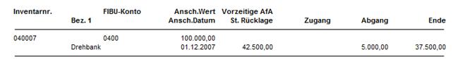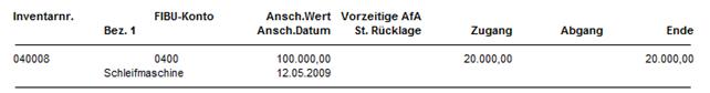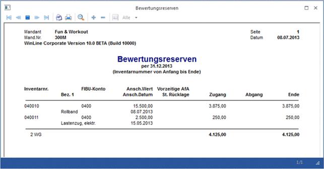 In den beiden Spalten Eingang und Abgang erhalten Sie immer den Wert der in diesem Jahr von der Bewertungsreserve abgegangen bzw. zugegangen ist.