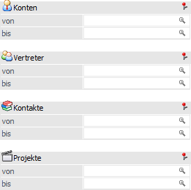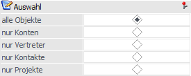 Ø nur Konten / nur Vertreter / nur Kontakte / nur Projekte