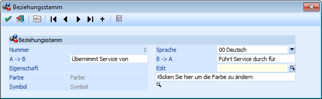 Durch einen Doppelklick auf den Text "Klicken Sie hier um die Farbe zu ändern" kann die Farbe gewählt werden, mit welcher die Beziehung in den Stammdatenfenstern angezeigt werden soll.