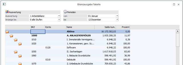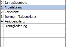 Wird die Bilanz als Tabelle ausgegeben, so können nur folgende Auswertungen der Bilanz als Tabelle