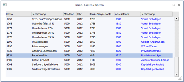 Sie erhalten eine Eingabemaske zum Editieren der fehlenden Konsolidierungskonten.