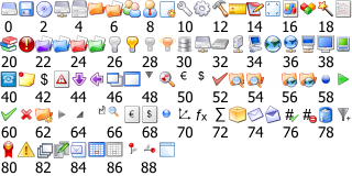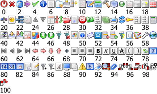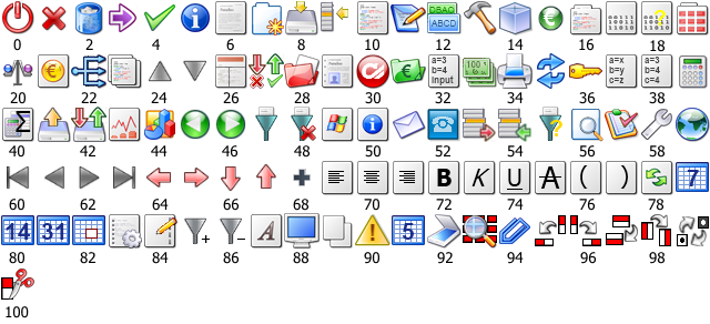 Die Grafiken der Bilderliste "1" sind im Format 32 x 32 Pixel gespeichert und entsprechen den Grafiken der Bilderliste "0". Diese werden ebenfalls in Programmfenstern der WinLine verwendet.