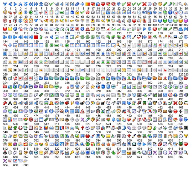 Die Grafiken der Bilderliste "5" sind im Format 16 x 16 Pixel gespeichert und werden hauptsächlich in WinLine Formularen verwendet.
