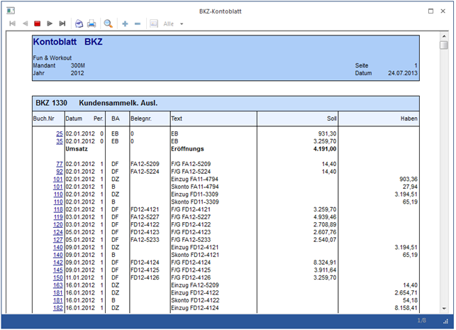 Im BKZ-Kontoblatt, das im Menüpunkt