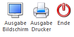Aus der Auswahllistbox kann gewählt werden, ob die Ausgabe am Bildschirm oder am Drucker durchgeführt werden soll. Standardmäßig wird die Ausgabe auf Bildschirm vorgeschlagen, die auch durch Drücken der F5-Taste gestartet werden kann.
