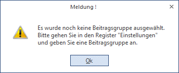 Wenn der Menüpunkt zum ersten Mal aufgerufen wird, wird die Meldung