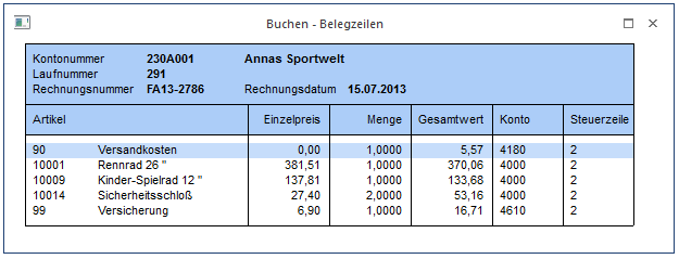 Wird dieser Button geklickt, so öffnet sich das Fenster "Buchen-Belegzeilen".