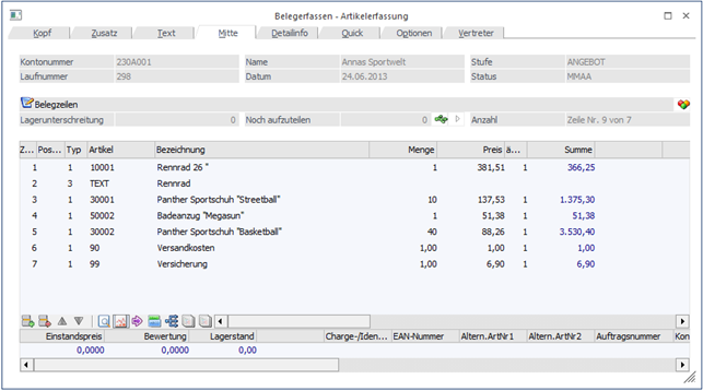 ü Mengen, Erlöskonten, Preise, Steuerzeilen usw. geändert werden