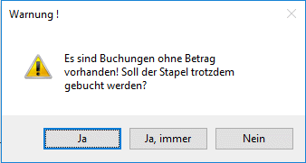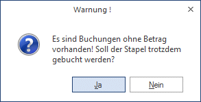 Vor dem Verbuchen eines Stapels wird geprüft, ob Buchungen ohne Betrag im Stapel existieren.