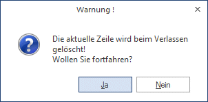 Wird die Meldung mit JA bestätigt, werden alle Buchungszeilen gelöscht. Wird die Meldung mit NEIN bestätigt, kann das Buchungsprogramm normal weiterbearbeitet werden.