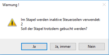 Vor dem Verbuchen eines Stapels wird geprüft, ob inaktive Steuerzeilen bebucht wurden.