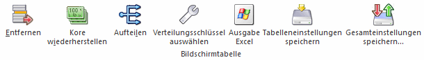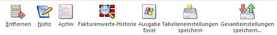 Durch Drücken des Einfügen-Buttons wird an der Stelle, an der sich der Cursor befindet, eine neue Eingabezeile eingefügt. Mit dem Entfernen-Button wird die aktive Zeile aus der Erfassungstabelle gelöscht.