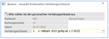In diesem Feld wird der Betrag angezeigt, der auch in die Kostenrechnung übergeben werden muss. In diesem Feld wird nur dann ein Betrag angezeigt, wenn in einem der verwendeten Konten eine Kostenart hinterlegt wurde (Siehe auch Kapitel Sachkonten).