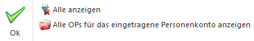 Beim Klicken des Buttons wird die aktuelle Buchung geprüft, d.h. gegebenenfalls wird noch die OP erzeugt bzw. muss die KORE eingegeben werden, bevor das Fenster geöffnet werden kann.