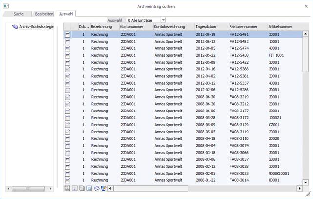 3. Ist die Archivsuche geöffnet, und der Focus auf ein archiviertes Dokument gesetzt, kann in der Buchungszeile mit der "F3"-Taste die Dokumentenkreisnummer übernommen werden.