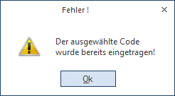 Zudem wird noch überprüft, ob auch jeder Code nur 1x vorkommt. Kommt ein Code doppelt vor, wird eine entsprechende Meldung ausgegeben.
