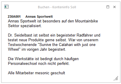 Das Fenster ist frei definierbar und es können alle Informationen aus dem Kontenstamm angedruckt werden.