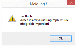 Nachdem der "Öffnen" Button gedrückt wurde, wird das Buch übernommen und eine Meldung ausgegeben:
