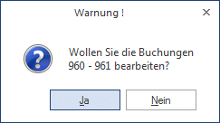 Wird die Meldung mit Nein bestätigt, so wird wieder das Fenster "Buchungen bearbeiten" angezeigt.