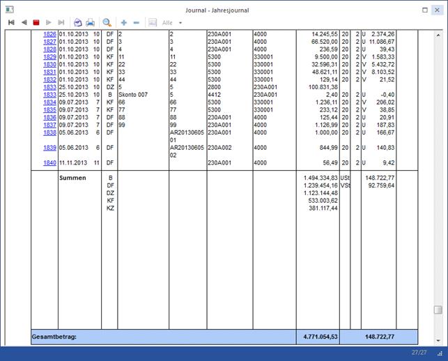 obersten Tabelle die Buchungsnummer angezeigt, mit der die Buchung ins Journal