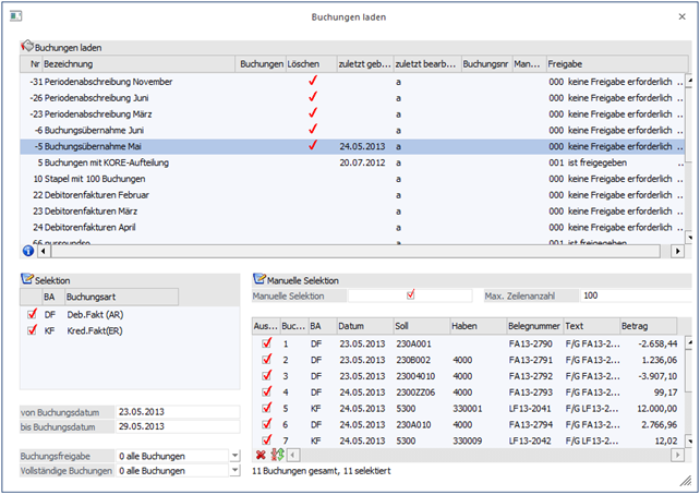 kann zusätzlich noch ein Zeitraum definiert werden, für den die Buchungen bearbeitet werden soll.