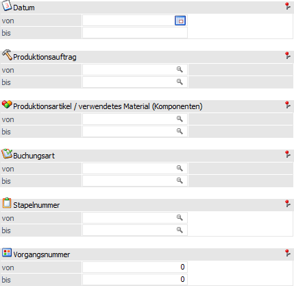Hier kann eine Selektion auf die auszuwertenden Produktionsaufträge vorgenommen werden.