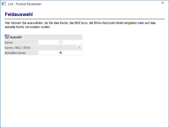 Hier kann wieder entschieden werden, ob sich der Wert auf das aktuelle Konto (das in der Zeile der Auswertung gedruckt wird) oder auf ein fixes Konto beziehen soll.