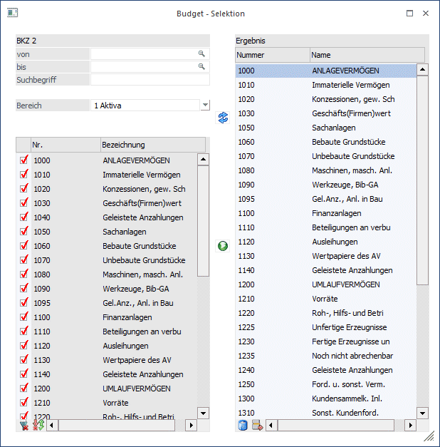 ausgewählt, die zum Budget hinzugehören sollen. Die Suche nach bestimmten