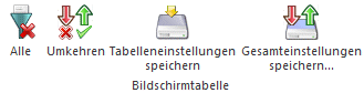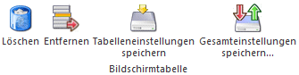 Im Gegensatz zu "Tabelleneinstellungen speichern" können mit "Gesamteinstellungen speichern" mehrere Tabellenaufbauten gespeichert und nach Wunsch geladen werden. Zusätzlich werden Sonderfunktionen der Tabelle (z.B. "Spalte gruppieren") ebenfalls bei der Speicherung bedacht.