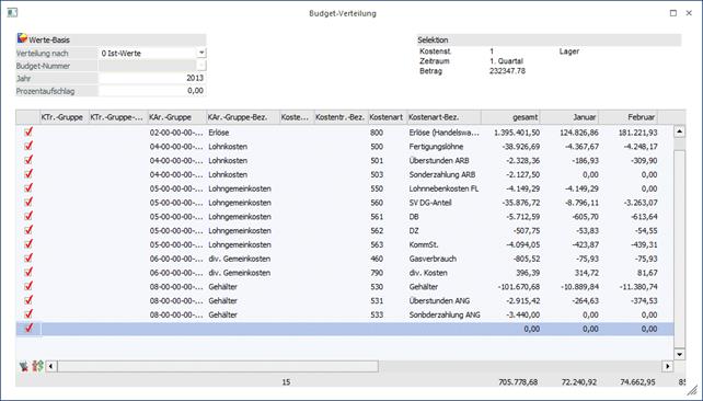 Bei der Option "aliquot" wird das Gesamt-Budget auf alle markierten Zeilen aufgrund der Verhältnis-Nr. verteilt.