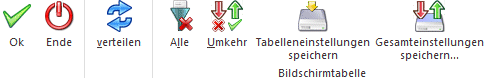 Die Spalten einer Tabelle können grundsätzlich an beliebige Positionen verschoben, bzw. in der Breite entsprechend angepasst werden. Durch Anwahl des Buttons "Tabelleneinstellungen speichern" werden die Einstellungen benutzerspezifisch gespeichert und bei dem nächsten Aufruf des Programmpunktes wieder vorgeschlagen.