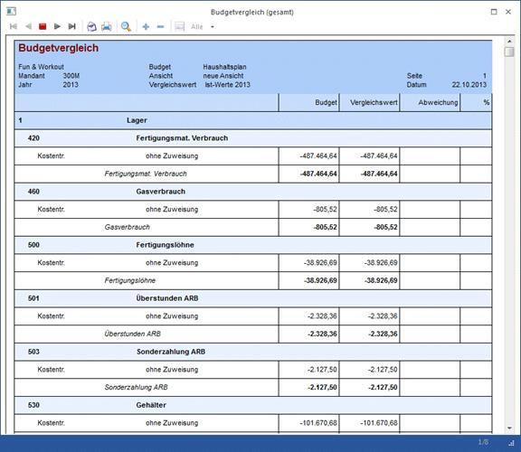 vorhandenen Werte der einzelnen Kostenarten.