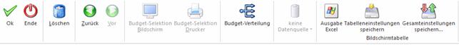 Über diesen Button können Sie entscheiden, ob Sie sich das Ergebnis der Budget-Selektion am Bildschirm oder am Drucker ausgeben lassen möchten.