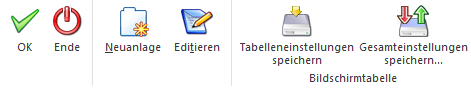 Ø Tabelleneinstellungen speichern