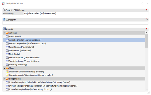 Mit dem Element "CRM-Eintrag" kann direkt aus dem Cockpit heraus ein Workflowstartpunkt oder ein Aktionsschritt gestartet werden.
