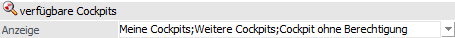Mit Hilfe der hier zur Verfügung stehenden Mehrfachauswahl kann definiert werden, welche Cockpits dargestellt werden sollen. Die gewählte Einstellung wird hierbei benutzerspezifisch gespeichert.