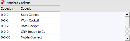 In der Tabelle "Standard Cockpits" werden die WinLine Standard Cockpits angezeigt. Per Doppelklick oder Enter-Taste kann das ausgewählte Cockpit als Grundlage für ein neues / bestehendes Cockpit übernommen werden.