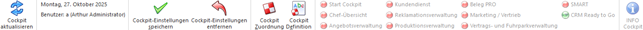 Durch Anwahl des Buttons "Cockpit aktualisieren" wird der gesamte Inhalt des Cockpits aktualisiert und neu aufgebaut.