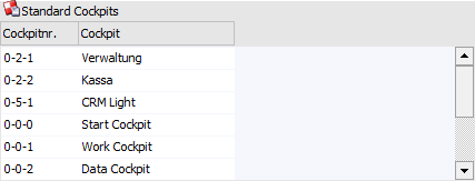 In der Tabelle "Standard Cockpits" werden die WinLine Standard Cockpits angezeigt.