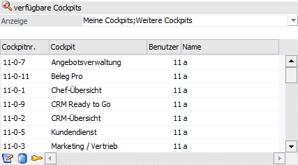 In der Tabelle "verfügbare Cockpits" werden, abhängig von der Applikation, die zur Verfügung stehen Cockpits des Benutzers angezeigt.