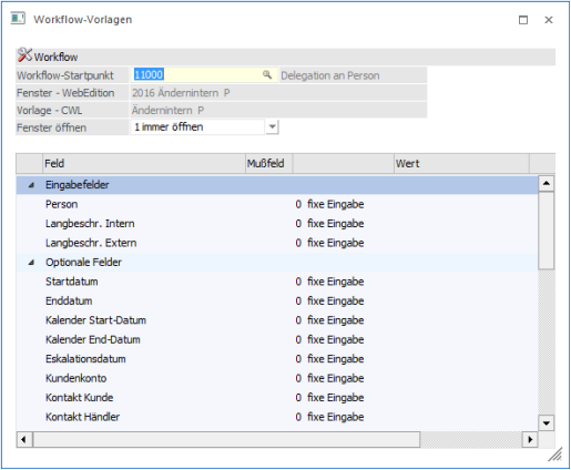 der Typen "16 - CRM Workflow", "17 - CRM Aktionen" und "18 - CRM Workflow und