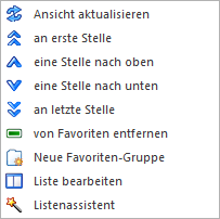 Favoritengruppen können in diesem Objekt per rechte Maustaste angelegt werden. Die Zuweisung von Listen erfolgt per Drag & Drop.