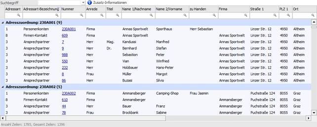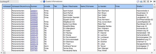Listen des Typs "23 - Adressen" angezeigt.