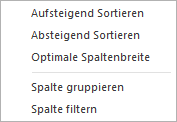 Über die rechte Maustaste stehen, je nach Objekt-Typ und aktuellem Fokus, folgende Funktionen zur Verfügung: