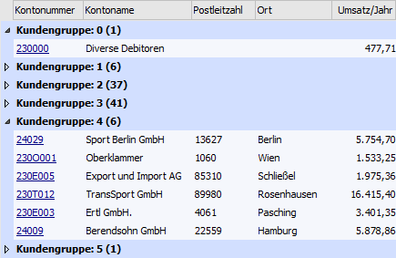 und Listen der Typen "01 - Debitorenstamm", "02 - Kreditorenstamm" und "14 -