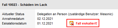Wenn das Eskalationsdatum kleiner dem aktuellen Tagesdatum (Systemdatum) ist, dann erscheint folgende Meldung in der Ansicht: