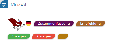 Durch Anwahl dieses Buttons wird die Fallansicht in der sogenannten "FORM-Ansicht" dargestellt. Bei dieser Ansicht wird auf der rechten Seite der Bereich von MesoAI angezeigt: