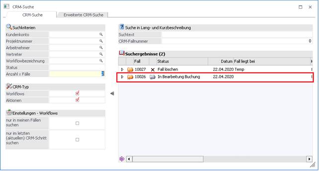 Der Fall kann anschließend über eine CRM-Liste, die CRM-Suche bzw. direkt über die Fallnummer im CRM-Showcenter, aufgerufen werden. In all den Varianten öffnet sich die Fallansicht zum ausgewählten Fall.