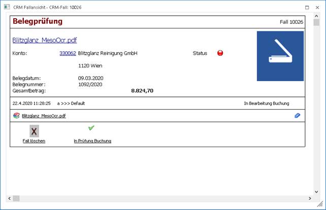 Wenn ein Beleg mit dem Modul "Beleg PRO" eingegangen ist, sollte immer ein Fall geschrieben worden sein. Im Wizard wird ab dem vierten Schritt ein Fall geschrieben bzw. wenn der Eingang über die Verzeichnisüberwachung erfolgte, sollte ebenfalls ein CMR-Fall geschrieben worden sein.