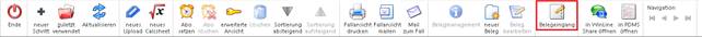 Wenn man einen Fall in der Fallansicht öffnet, bei welchen der Fall über einen Belegeingang mittels Modul "Beleg PRO" erfasst wurde, ist der Ribbon-Button "Belegeingang" aktiv geschalten.